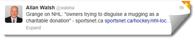 "That was not a strike. It was a lockout. The owners locked out the players. The owners rolled back the players’ salaries by a whopping 24 per cent and they shoved a salary cap down the players’ throats. Ring a bell?"