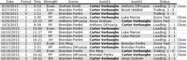 One degree of separation from Perlini is teammate Carter Verhaeghe ranked third in scoring. The center was drafted in the 3rd round in 2013 (82nd overall). Niagara travels to Oshawa on Sunday Oct 26, and the plan is to attend the game for more detailed notes early next week. This post concentrate more on the numbers than scouting.