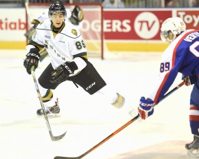 Dating back to his minor midget days where he starred with the Don Mills Flyers, Dante Salituro has always been an exciting talent to watch because he always leaves everything on the ice. Salituro has developed into an excellent OHL player and now, in his draft year, is hoping that scouts see NHL value in his game as well. On a team featuring top prospect Travis Konecny, Salituro is actually outscoring his teammate by 10 goals/points. Like Konecny, Salituro’s best attribute is his natural sniping abilities which is highlighted by an extremely quick release. Small players are certainly getting more looks then they used to as NHL prospects and one would have to think that Salituro gets picked up at some point during the 2015 draft.