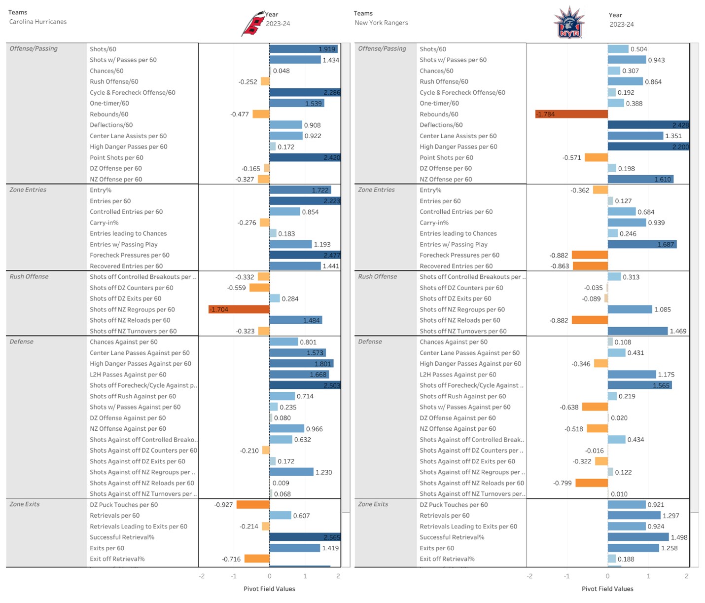 How this plays out in a series will depend on the sequence of a game. If Carolina gets a lead, they should be set (although their Game 5 against the Islanders suggests otherwise) while the Rangers can do enough things to frustrate them if the Canes are playing from behind. The one area off the rush where they’re the most prone is counterattacks from the defensive zone, which usually happens when Carolina is pushing for offense late and the Rangers are good enough off the rush to capitalize on these opportunities.