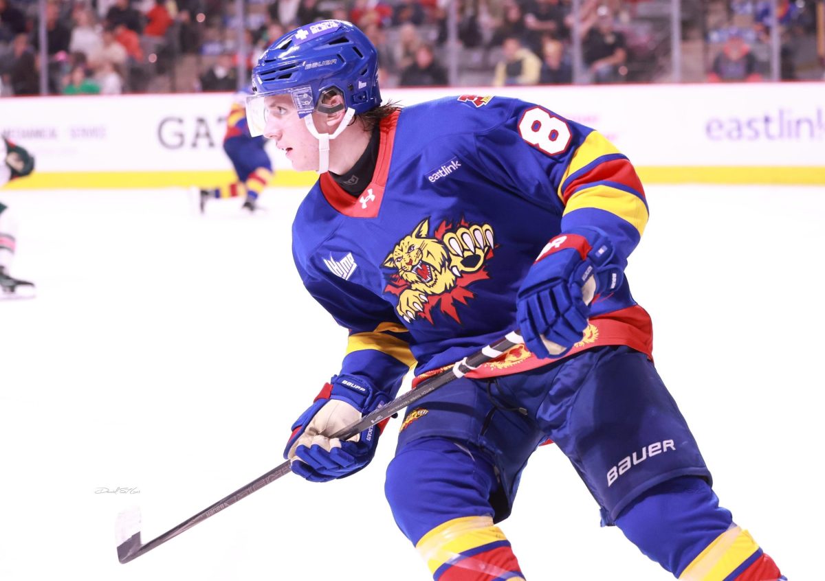 Kostov has been enjoying a career year in his fourth OHL season. He has been a key contributor to the Firebirds’ success, setting a new career high in points and surpassing the 20-goal mark. He has been sidelined since the end of January recovering from an upper-body injury. Kostov attended the Nashville Predators prospect camp last fall, appearing in two games during the team’s NHL prospect tournament. Kostov plays a power-forward style, and at 6’4”, 208 pounds, he understands how to use his size effectively. He does not shy away from physical play — rather, he embraces it. He’s also an excellent athlete who has worked hard to become an above average skater for the OHL level. Flint has found success pairing him with natural goal scorers, as his ability to win puck battles and use his frame to protect possession allows him to distribute the puck effectively to his linemates. Kostov plays responsibly in his own end, forcing more than three turnovers per game in the defensive zone. He utilizes a hard, active stick to disrupt opponents on the rush and uses his length to strip the puck. A healthy return from Kostov in the playoffs would be a significant boost for the Firebirds, as he provides the size and grit needed for a deep run. At the pro level, Kostov projects as a bottom-six winger who brings energy through his physicality and high compete level. He excels in puck battles, plays responsibly at both ends of the ice, and focuses on doing the small details well — winning possession and getting the puck to his team’s primary scorers. (Liam Staples)