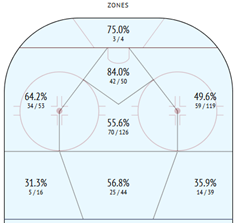 This image represents his strength, showing in percentage his accuracy in each zone of the offensive zone. There is a clear problem at the right side like shown in previous clips. Other than that, most of Dagenais’s shots come from the slot, so you don’t want to let him alone in front of your goalie.