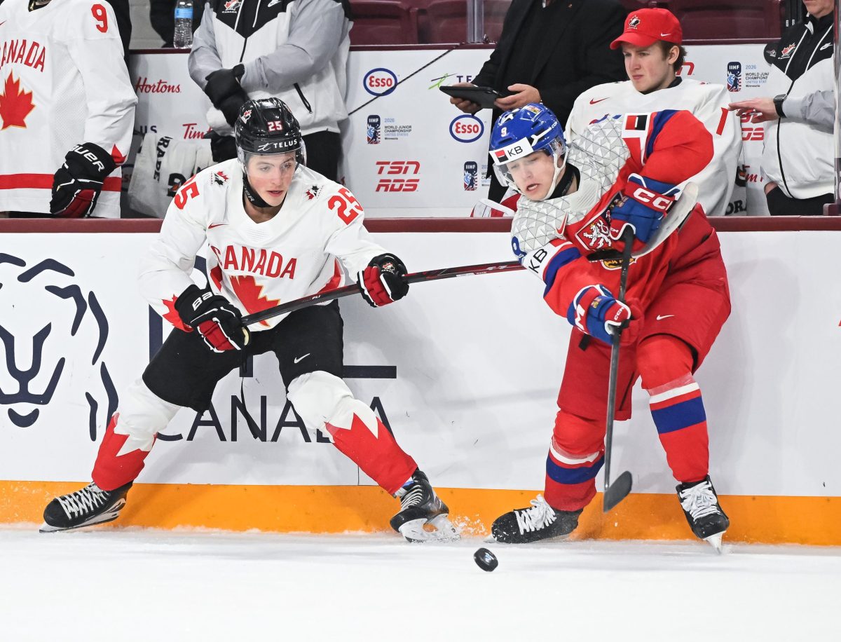 In what can already be called “the game of the tournament,” Canada survives their bout with Czechia in their opening matchup. The back-and-forth affair saw four game-tying goals and three lead changes. Canada’s talent really was the deciding factor here as Zayne Parekh’s two goals to tie and take the lead ended up being the crucial two goals that they needed. Other shining stars for Canada were Michael Hage and Ethan MacKenzie, who each had three-point nights. Gavin McKenna was also notable not only for his two primary assists, but also his two-way play. The Czechs most valuable player was certainly Tomas Poletin who notched two game-tying goals in this game. Vojtech Cihar, Adam Benak, and Tomas Galvas were also crucial to the Czech attack and kept them in this game. Canada has faced true adversity here and will be stronger for it as they get the needed regulation win here. Czechia has done two great things for themselves; they looked dangerous on the rush and exposed Canada’s weakness on defending their rushes. Overall, this was by far the most fun game to watch on day one.