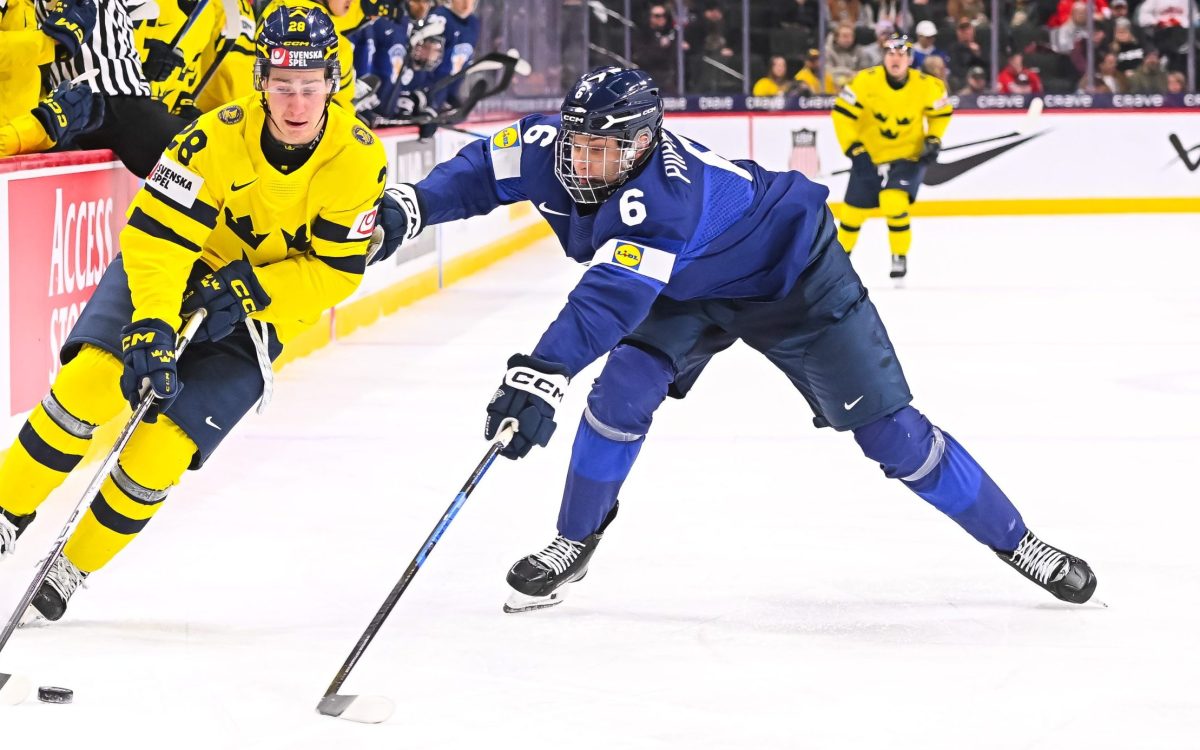 The wacky nature of this rivalry continued in earnest during the second period, as Ivar Stenberg would fire a shot that found the back of the net about a minute in off a delayed penalty. Keeping it close, the Finns were beneficiaries of one of the wildest bounces in World Juniors history. Jasper Kuhta dug at the puck to force it to the glass behind the net, only for it to ricochet back into danger, where Harenstam backed into the puck to put it in. That score held for over ten minutes, which were filled with both squads trying to absolutely kill each other on the ice, with everyone throwing the body around. Sweden got their lucky bounce when Eddie Genborg found a shot that rebounded back to him behind the net, where Rimpinen was completely out of place, allowing Genborg to throw it back in for the goal. Sweden took their lead into the second intermission, but not before a MONSTROUS Jack Berglund hit on Finland’s Leo Tuuva.