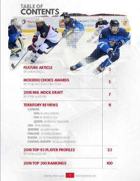 Digital Magazine of bestselling annual McKeen’s 2018 NHL Draft Guide. Perfect for Tablets and e-Readers. Downloadable to a PDF- Top 300 exclusive rankings