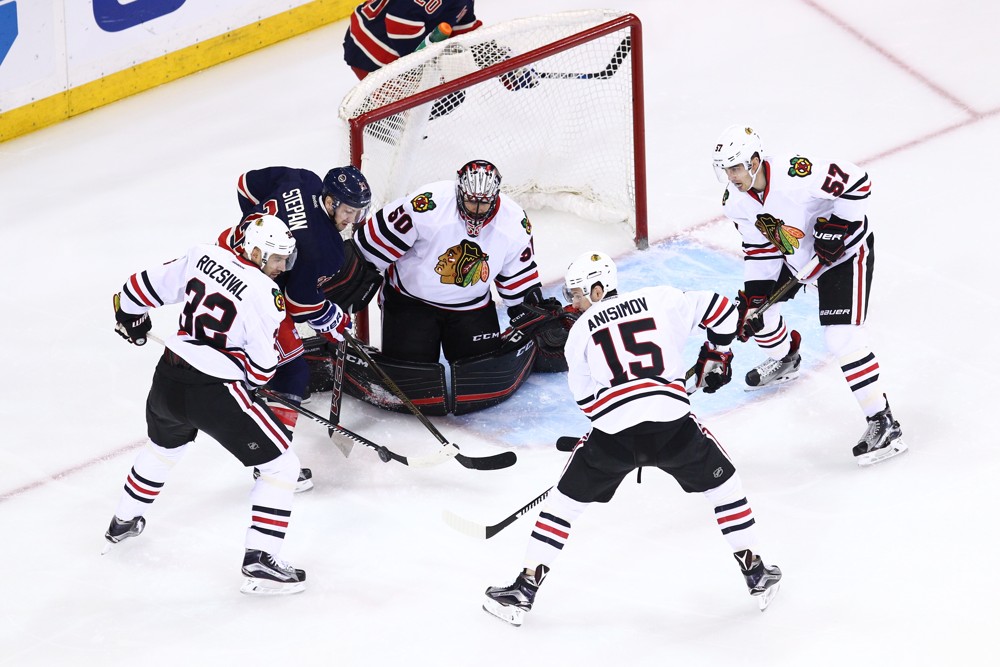 ![February 17, 2016: New York Rangers Center Derek Stepan (21) [6917] slaps at a rebound off of Chicago Blackhawks Goalie Corey Crawford (50) [3760] during an original six match-up between the Chicago Blackhawks and the New York Rangers at Madison Square Garden in New York, NY. (Photo by David Hahn/Icon Sportswire)](http://www.mckeenshockey.com/wp-content/uploads/2016/02/Blackhawks-at-Rangers.jpg)