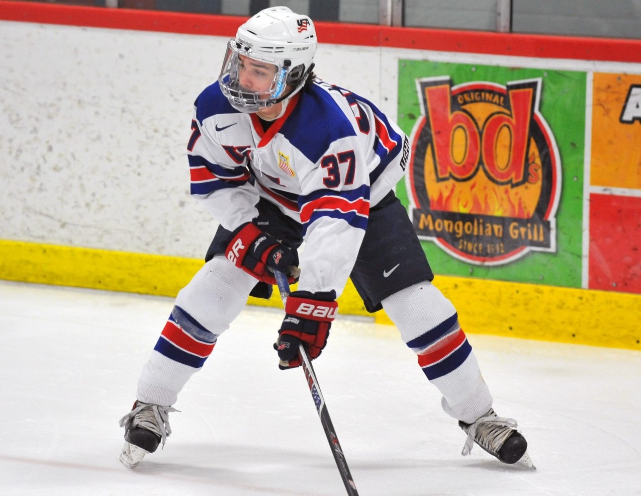 A shoot first player, he can skate and has solid puck skills, but his main drawback in juniors was lapses in hockey sense that led to unfortunate decisions and often a couple of minutes to think about it in the penalty box. If he is not reunited with Keller, Bellows should play a bottom six role. The mule on that line last year was Joseph Anderson, now with the UMD Bulldogs. Anderson has taken to the collegiate game better than former linemate Bellows, contributing around one point per game as a freshman. What Anderson lacks in foot speed, he makes up with plus hockey IQ. He has a knack for picking the right spot to get to and making the smart hockey play once he is there. He is a versatile player who could fill a number of roles for Team USA.