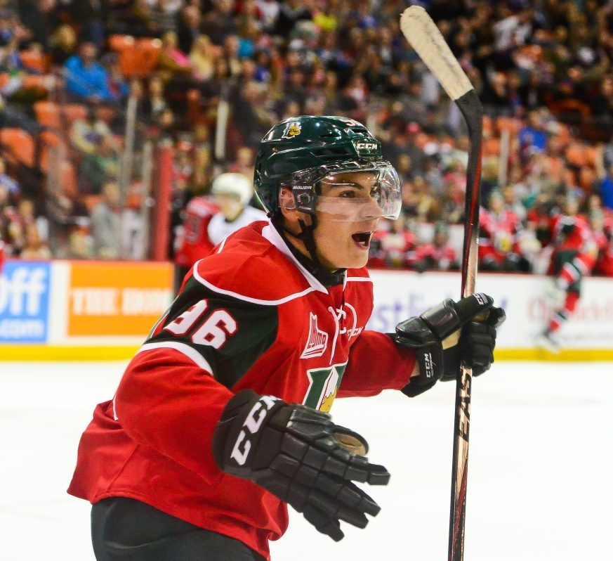 If I have any concern at all for Hickey’s future projection it is his skating. His stride can be adequate in small areas, as he is agile and his first few steps are strong enough. When it comes to races, or long distance play, he leaves me with some questions. All told, I can give him an average skating grade, but feel that he can be exploited on long range break out passes. The Flames are deep on the blueline and so can afford to give him time in the AHL to hone his game. After the season he is having, I expect him to suit up in Stockton by next fall.