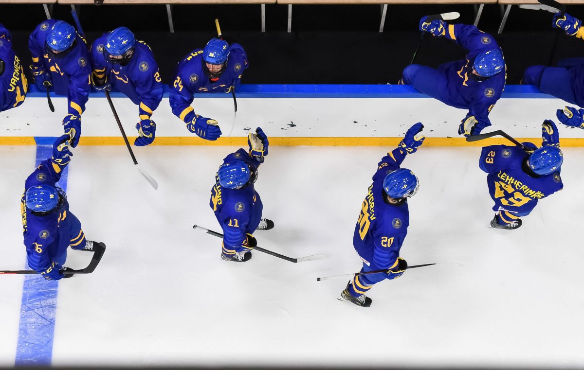 How to get into a coach’s doghouse: With Germany already a man down within the first two minutes of the game, defenseman Philip Sinn (2022) chipped the puck out of his zone and over the glass with a backhander, giving Sweden the 2-man advantage right off the bat.